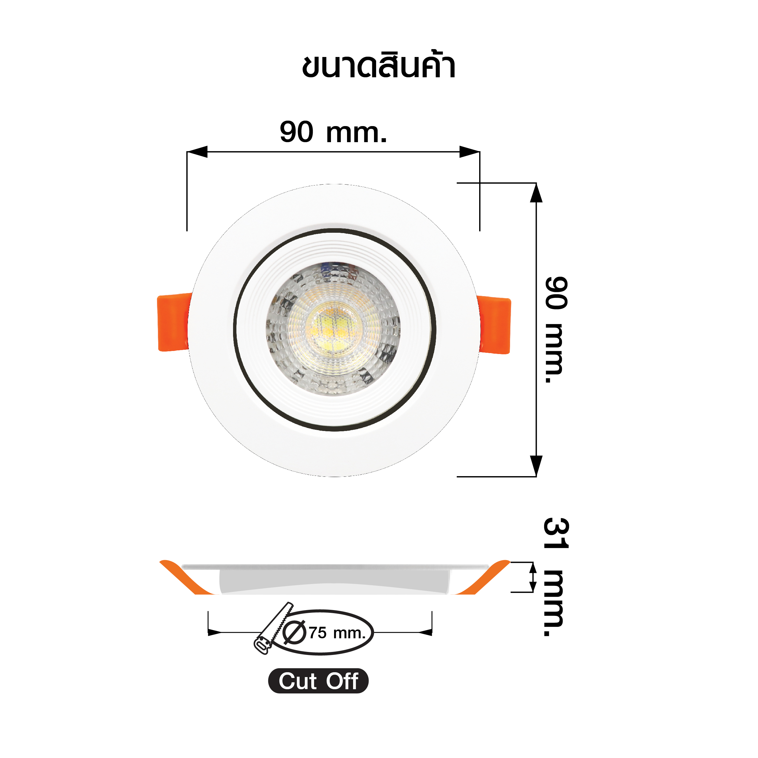 • สินค้าเป็นโคมชนิดสำเร็จ เหมาะสำหรับติดตั้งบริเวณที่ต้องการแสงสว่างเฉพาะจุด ติดตั้งง่ายไม่ยุ่งยาก สามารถเปลี่ยนแทนโคมไฟดาวน์ไลท์เดิมได้ทันที